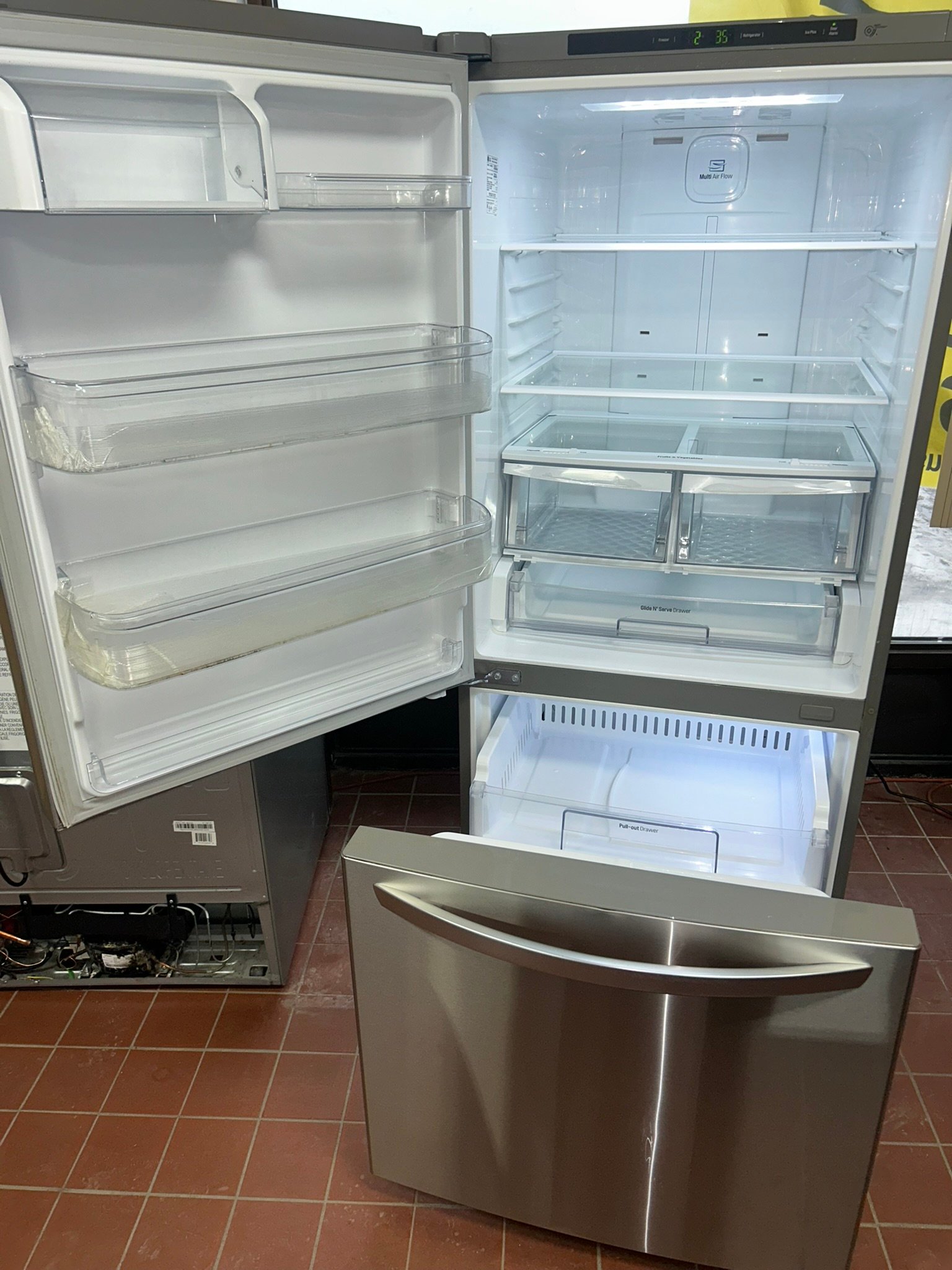 The LG LNDS22220S Refrigerator Model is designed to elevate your kitchen experience. This side-by-side refrigerator boasts a generous 22 cubic feet of storage space, making it ideal for families and those who love to entertain. With its sleek stainless steel finish, the LG LNDS22220S adds a modern touch to any kitchen decor. One of the standout features of this refrigerator is its advanced cooling technology, which ensures that your food stays fresh longer. The LED lighting provides bright illumination, allowing you to see everything inside with ease. Additionally, the LG LNDS22220S Refrigerator Model is equipped with a user-friendly touch control panel, giving you complete control over temperature settings and other functions. The energy-efficient design helps you save on electricity bills while being environmentally friendly. Enjoy the convenience of adjustable shelves that can be rearranged to accommodate taller items, and the spacious freezer section that offers ample storage for frozen goods. The water and ice dispenser provides quick access to chilled water and ice, making it perfect for hot summer days. With the LG LNDS22220S Refrigerator Model, you get not only style but also functionality that meets the demands of modern living. Experience the perfect blend of performance and design with this exceptional refrigerator that will undoubtedly enhance your kitchen experience.